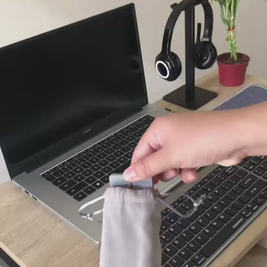 This foldable aluminum laptop riser offers customizable angles for healthy posture. Made with durable materials and non-slip pads, it securely holds all laptops and tablets—portable for work anywhere.